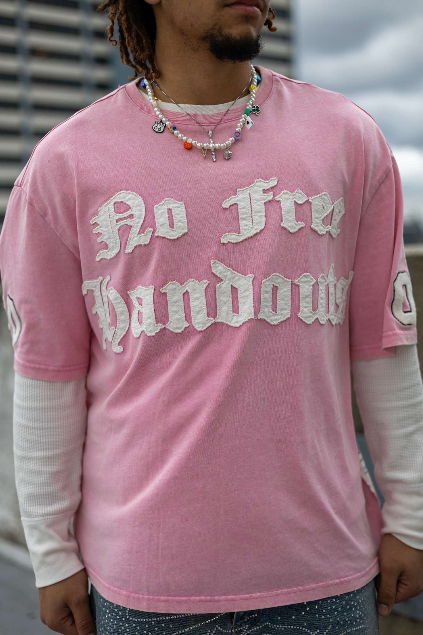 Design Features: High-quality screen print detailing, hand-distressed patches for a vintage aesthetic, soft faded wash for a worn-in look, and an embroidered neck tag patch for elevated branding.